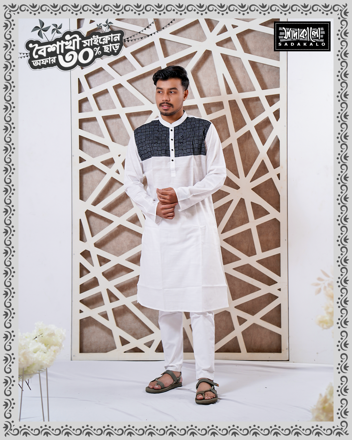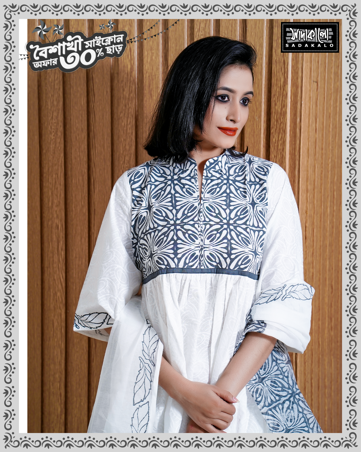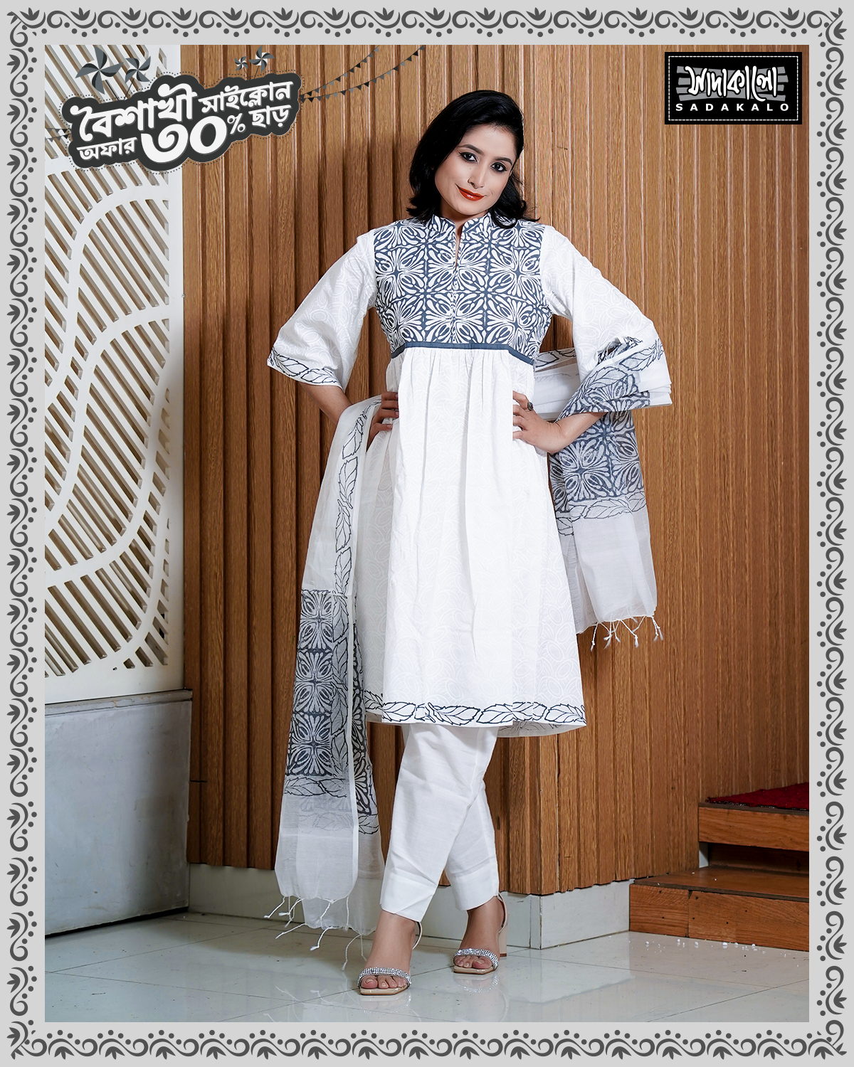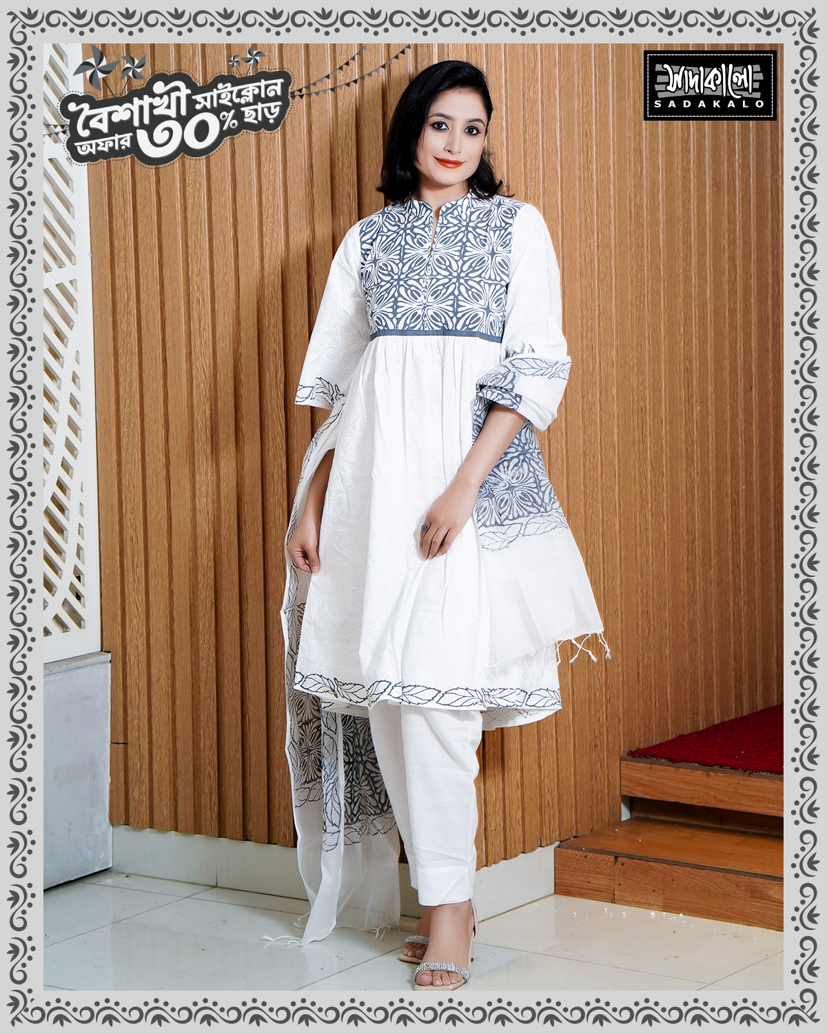 Make this Eid special with our New Eid  Block Print  Cotton Fabric White  Kameez. Shop now and elevate your festive fashion with elegance!
