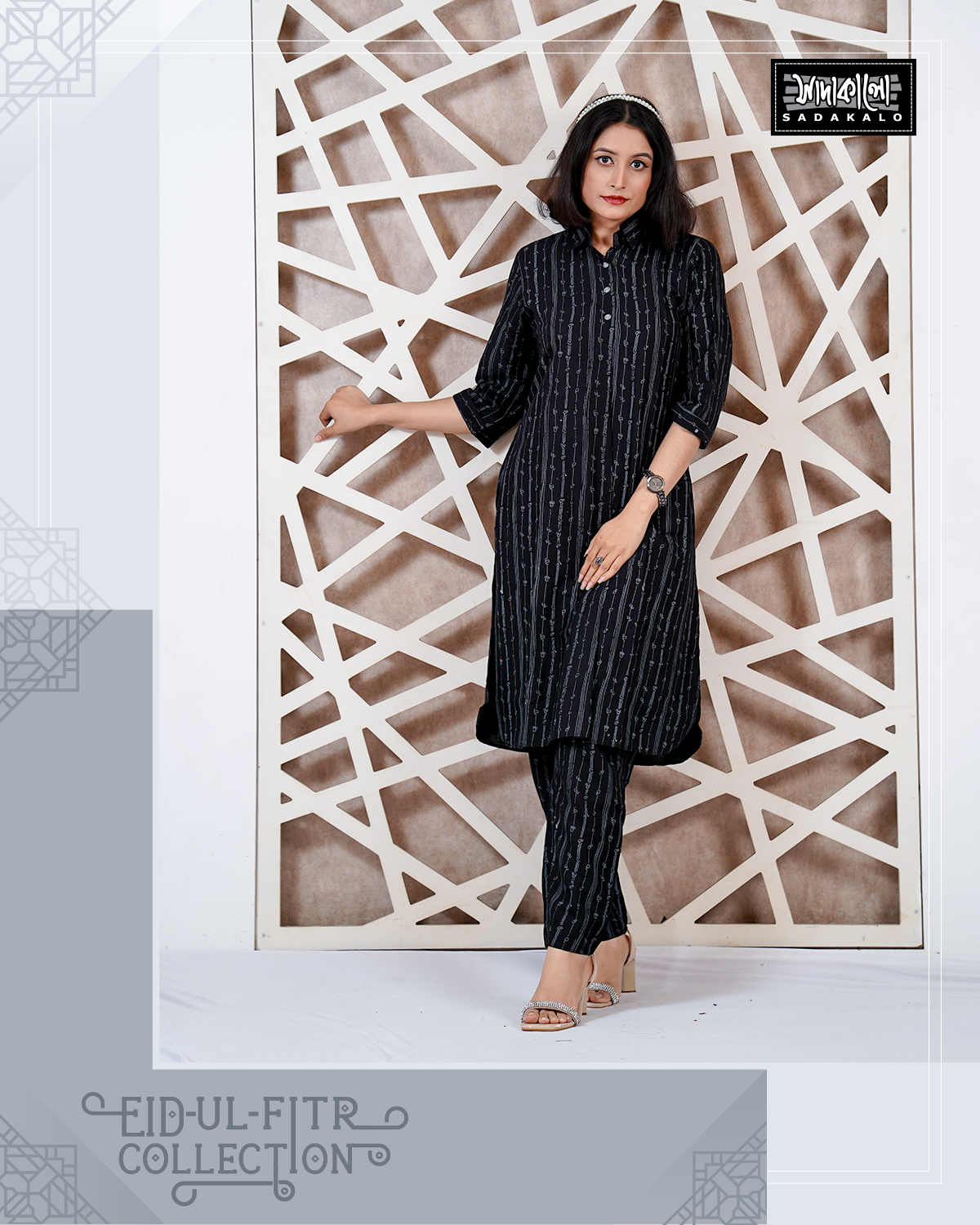 Step into Eid celebrations with unmatched elegance in our Excessively Stylish Cotton Printed Black Color Co-ord Set. Designed for those who love sophistication with a modern touch, this outfit is the perfect blend of tradition and contemporary fashion.