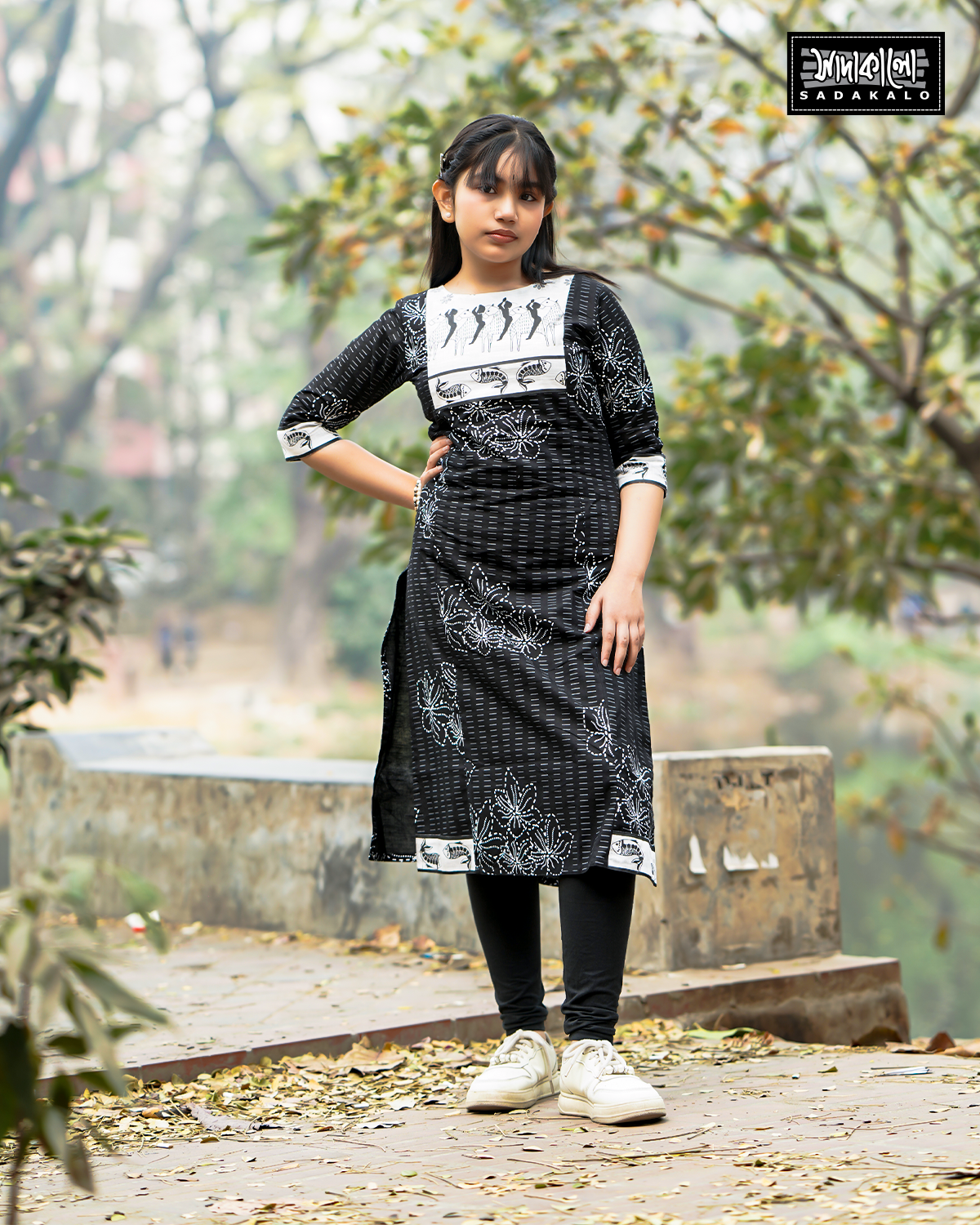 Design: The baby salwar kameez set will feature a unique media block design, which could include geometric patterns, abstract motifs, or traditional-inspired prints. The design will be predominantly in black and white colors, offering a classic yet contemporary aesthetic.