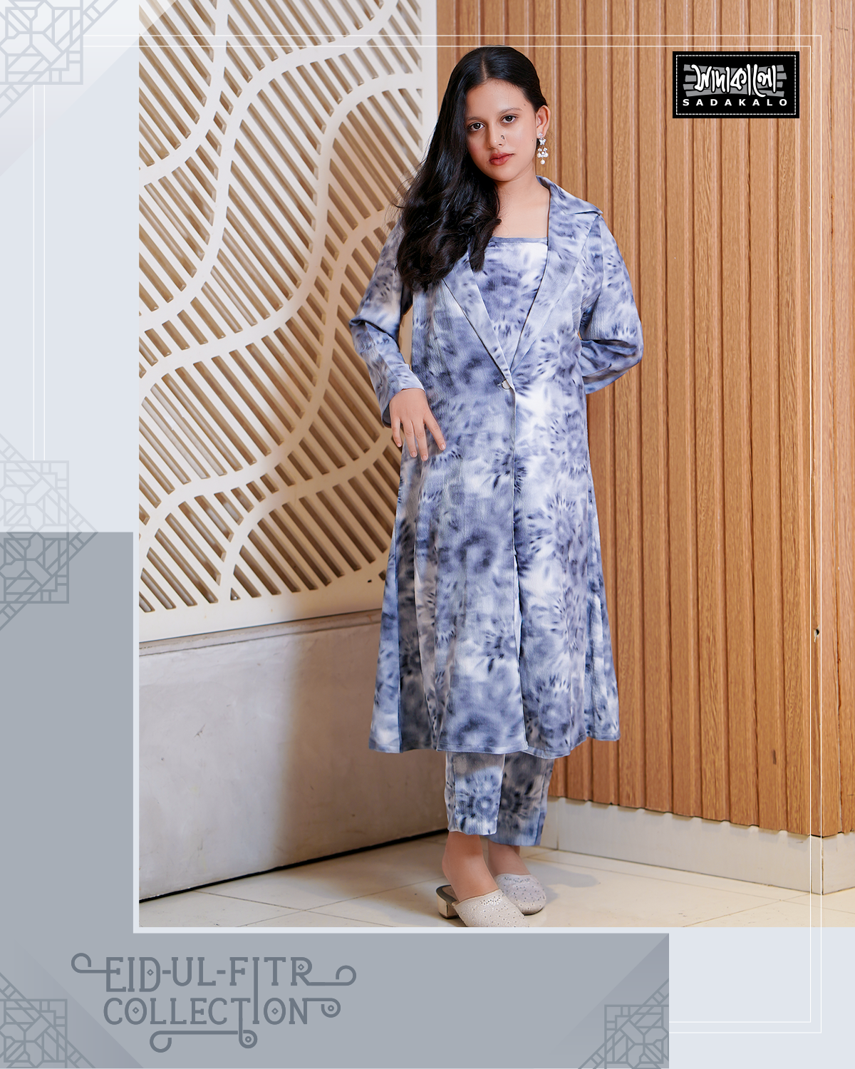 Celebrate Eid in timeless elegance with this signature from Stylish Lilen Co-ord Set Sadakalo. Designed for the modern woman who values both tradition and sophistication, this ensemble blends classic monochrome aesthetics with contemporary tailoring.