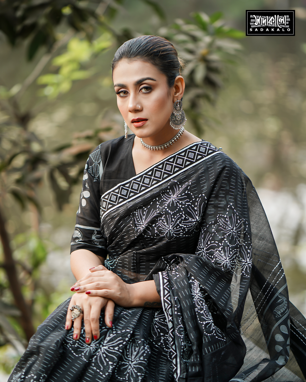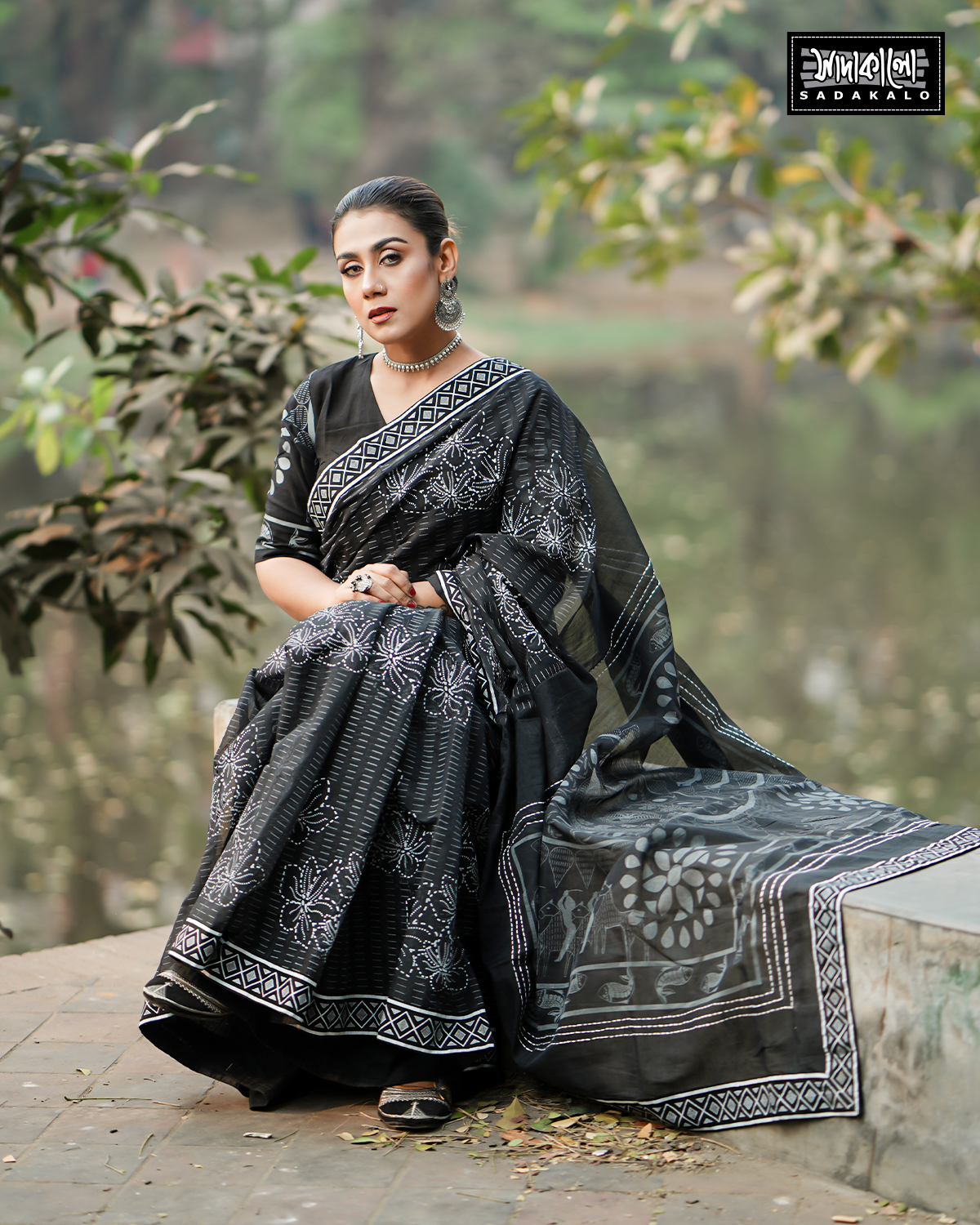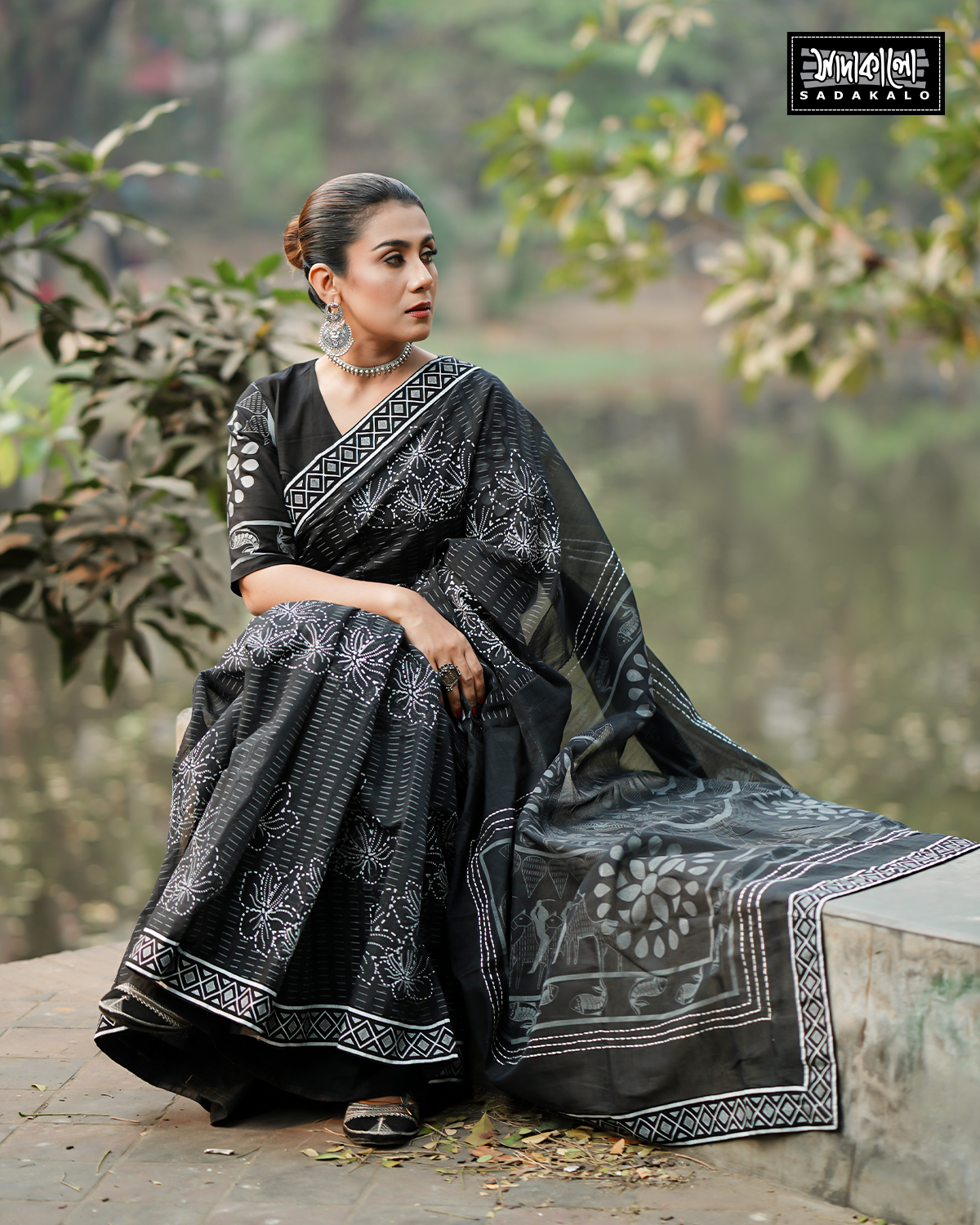 Screen Printed Half Silk Fabric Sharee